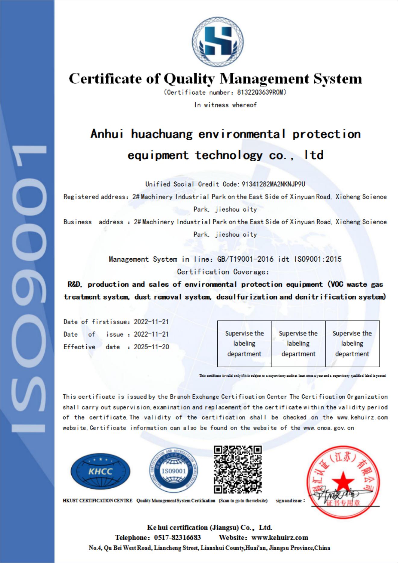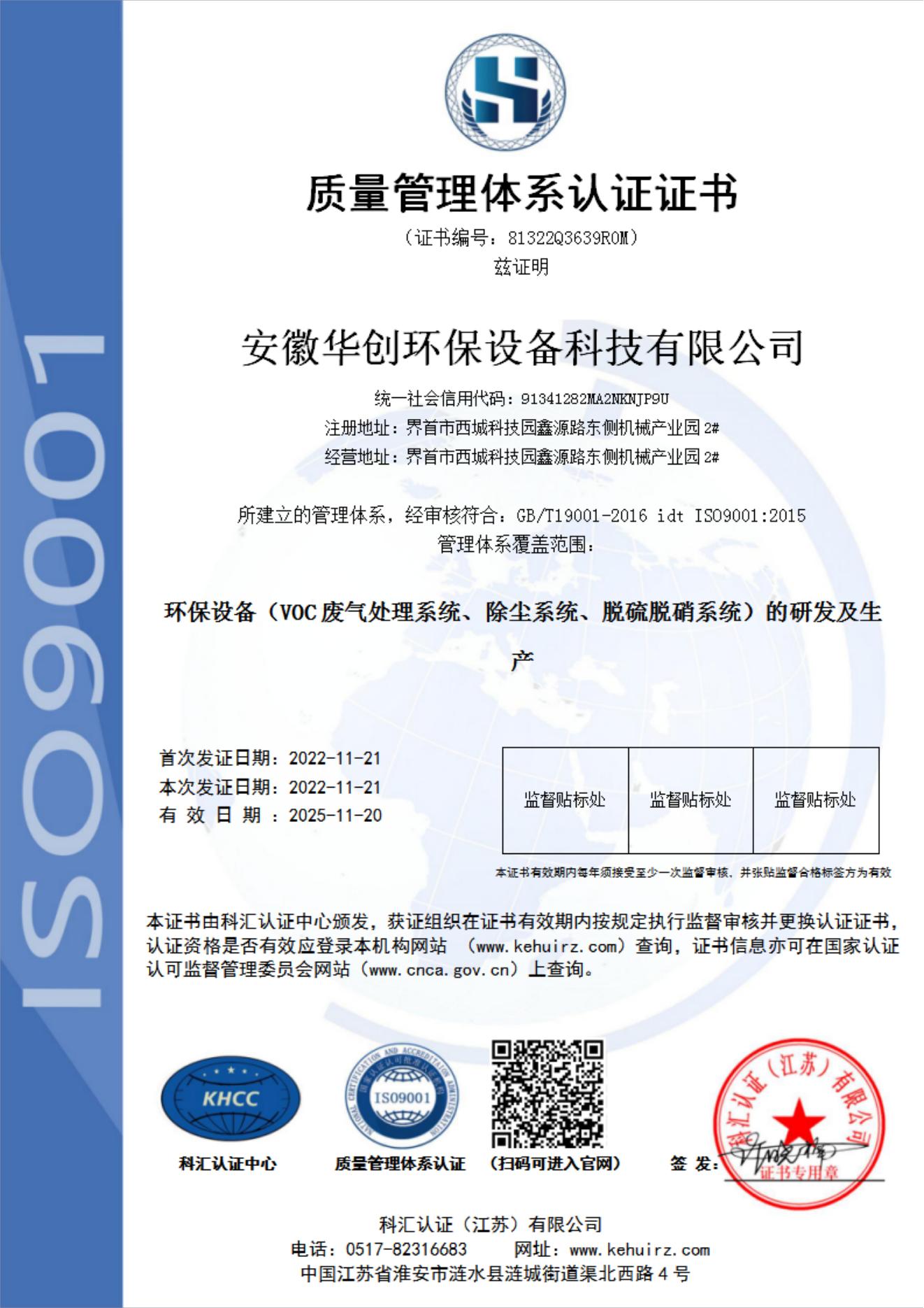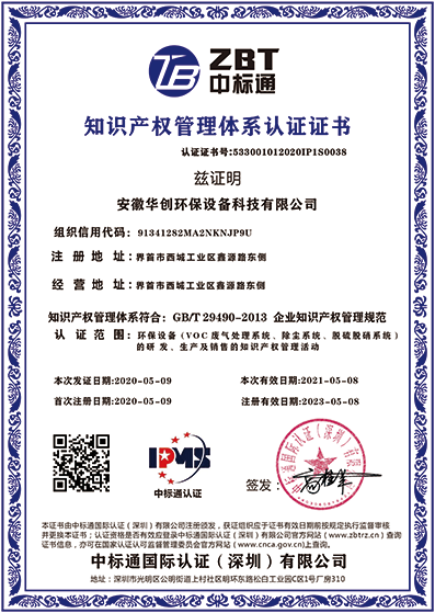 公司先后获得发明专利12项、实用新型专利10项、软件著作权6项,申请注册商标3项、 企业标准备案2项。先后通过了IS09001:2015质量管理体系国际标准认证、IS014001:2015 环境管理体系国际标准认证、IS045001:2018职业健康安全管理体系认证、知识产权管理体系认证和两化融合管理体系认证,公司先后被认定为“科技 型中小企业”、“高新技术企业” ,拥有安徽省环保协会颁发的环境污染治理工程总承包和专项设计资质。公司自成立以来,坚持以创新发展为主体,按照创新、高效、优质、安全的要求,引进国内外先进的生产、检测、检验设备及生产工艺,发展专业环保设备产业,建立科技创新和成果转换体系。